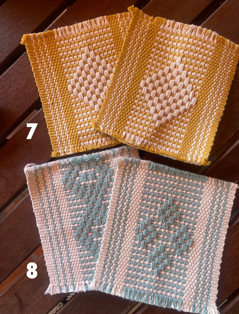 This listing is for Zapotec hand woven textiles in a smaller size for coasters or a medium size for hot pads, plant rugs, pot holder- sold individually or in sets of two or four. If you would like a set- please choose the option “set of 2” or “Set of 4” and let me know which color option you would like in the customization area