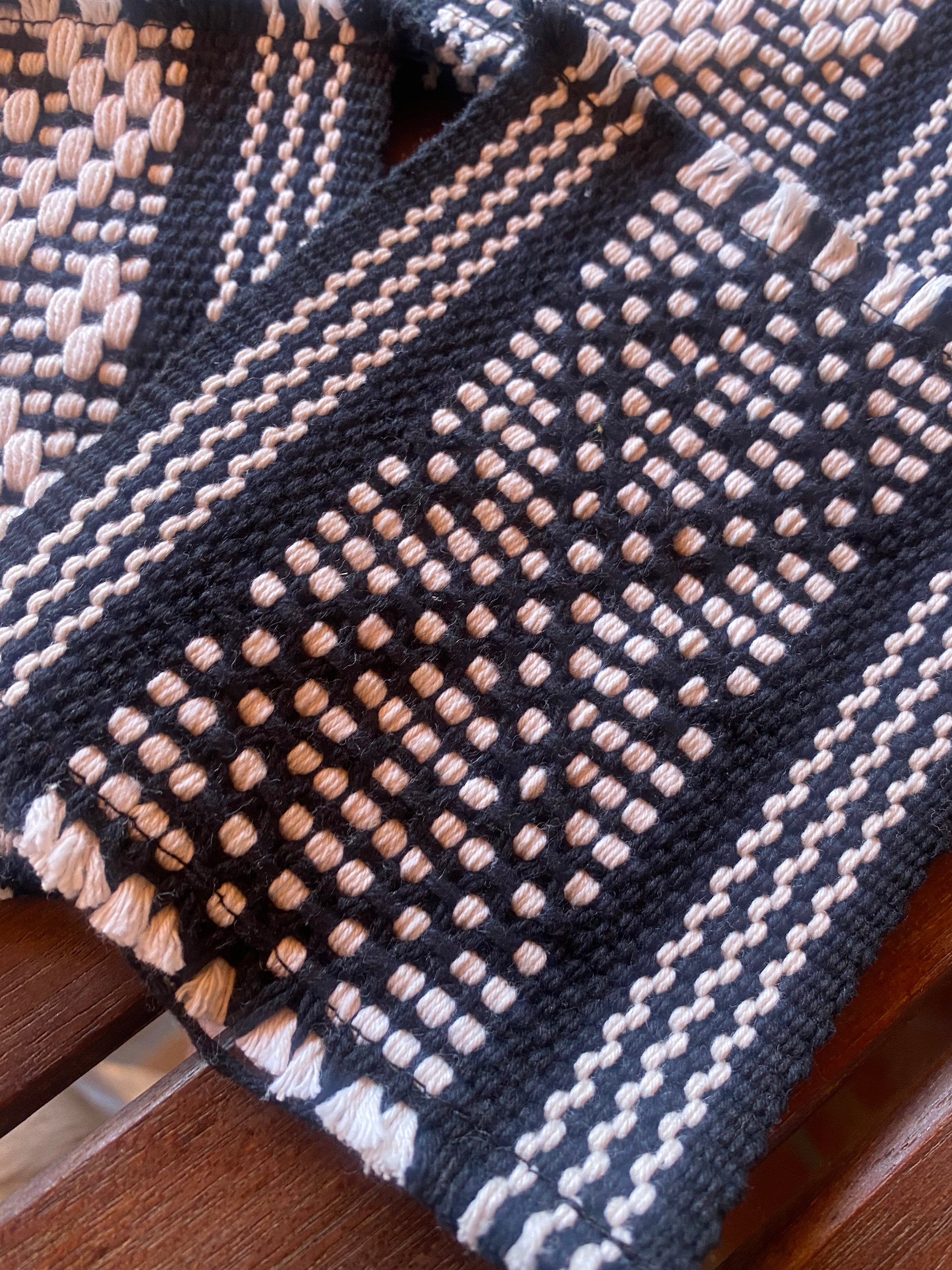 Zapotec wool is woven with a foot loom by the Vicente family in Teotitlan del Valle, Oaxaca. These Teotitlan master weavers use pre-Hispanic traditional methods passed down from generation to generation. Using hand spun naturally dyed yarn, Zapotec weavers create amazing designs with rich colors. There is an unmistakable handcrafted quality in each piece. Each piece is unique and one of a kind!