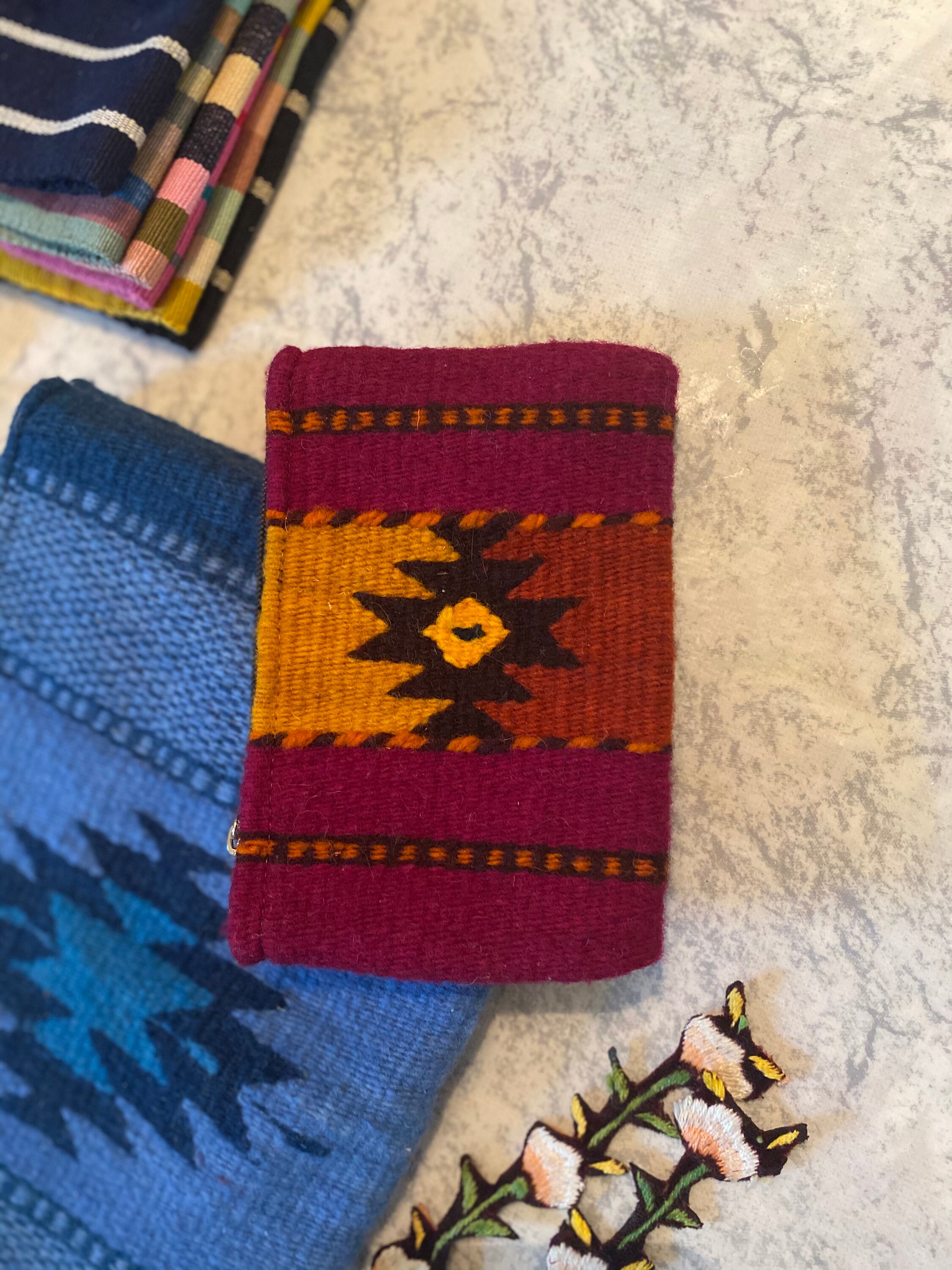 This listing is for a Zapotec hand woven merino wool handbag and 2 coin purses